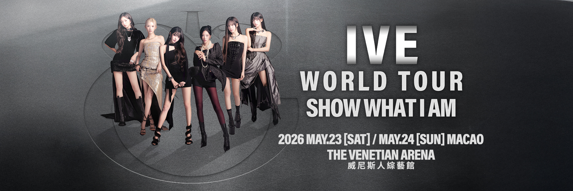 韓國人氣團體 IVE (ANYUJIN, GAEUL, REI, JANGWONYOUNG, LIZ, and LEESEO), 正式公布備受期待的第二次世界巡迴演出《SHOW WHAT I AM》,將於 2026 年 5 月 23 日及24日(週六至週日)在威尼斯人綜藝館盛大開唱。
