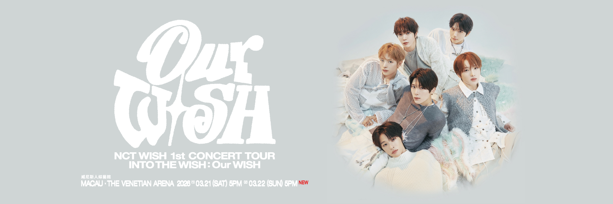 NCT WISH 首次巡迴演唱會澳門站「INTO THE WISH : Our WISH」重磅登場!獻唱出道以來多首人氣金曲,更特別準備中文互動環節,用熱血舞台與真摯告白,和粉絲共同解鎖專屬回憶,打造充滿願望與感動的雙向奔赴音樂盛宴。